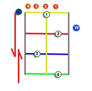 - Masing-masing garis horizontal akan dijaga oleh penjaga, namun garis vertikal hanya ditengah dijaga