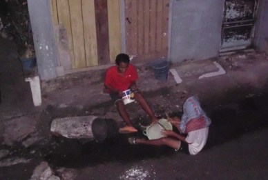 Berkeliling kampung melalui gang-gang dengan membunyikan musik khas pasukan pengingat sahur, yakni dengan ember-ember bekas, botol gelas, botol plastik, atau potongan paralon yang diberi karet.