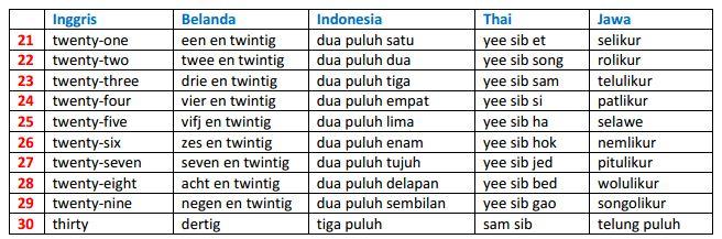 Berikut ini kami sajikan angka-angka dalam berbagai bahasa, Inggris, Belanda, Indonesia, Thai, Jawa, sebagaimana dilansir oleh Kompasiana.