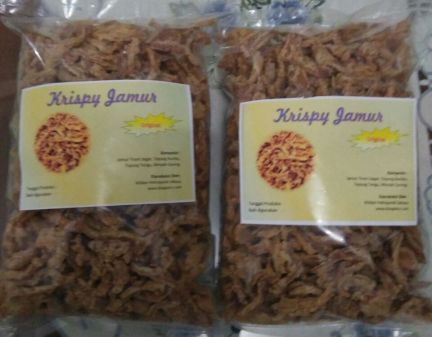 Bahan mentah tersebut di atas apabila di goreng kemudian di spinner, akan menghasilkan krispy jamur tiram antara 800 – 1000 gram atau kisaran 1 kg krispy