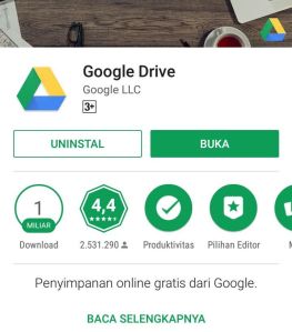 Cari pada aplikasi Google Play dengan kata kunci Google Drive, temukan gambarnya seperti yang ada di bawah ini.
