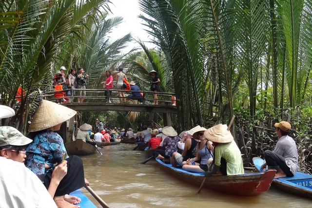 Delta Sungai Mekong di Vietnam menjadi obyek wisata yang menarik untuk berwisata bersama seluruh keluarga besar, dengan sampan dan perahu kecil.