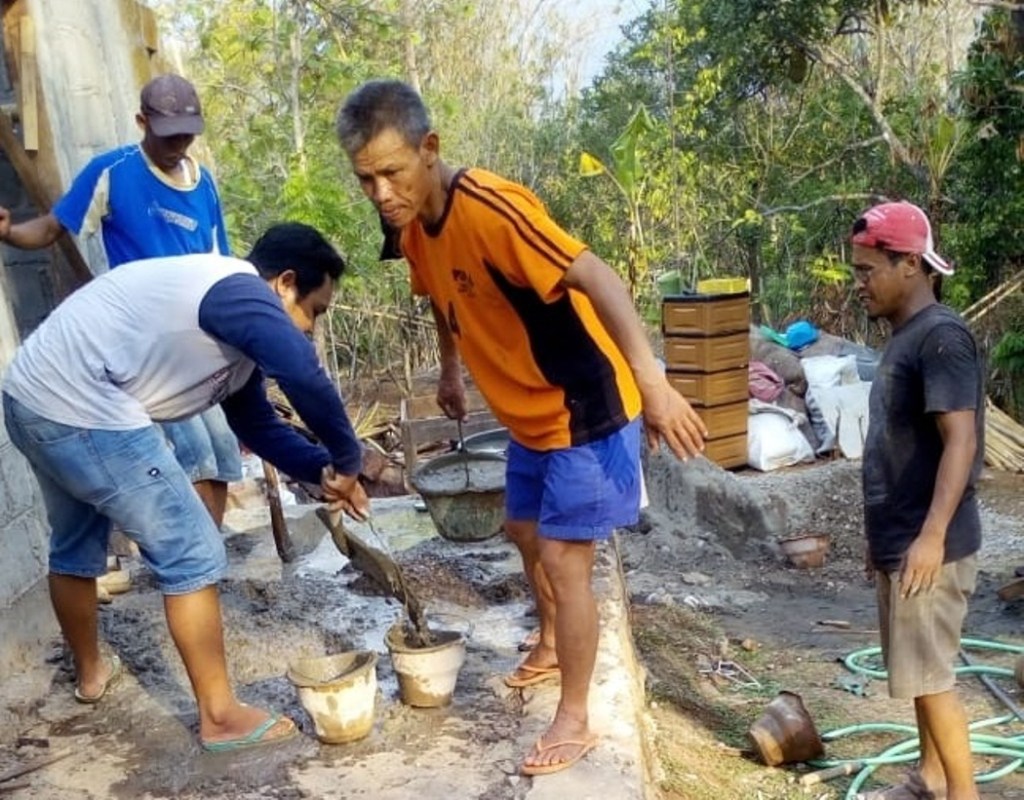 Gotong royong di Dukuh Ngemplak, Desa Tawangsari, Kecamatan Teras, Kabupten Boyolali, Jawa Tengah pada bedah rumah di salah satu warga masyarakat setempat.