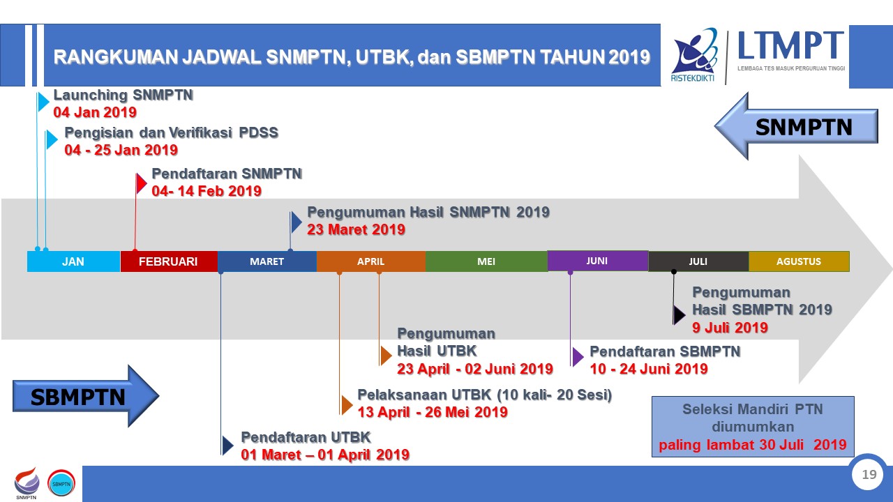 - Pendaftaran SNMPTN : 04 Februari – 14 Februari 2019