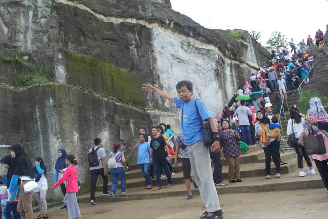 Apabila dari puncak tebing pun dapatkan pemandangan dengan latar belakang yang memesona, untuk ke atas tebing melalui anak tanggal yang dipahat langsung pada breksi.