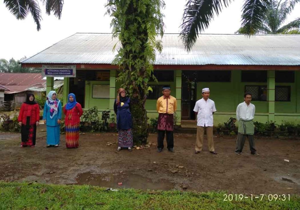 Apel pagi (upacara) hari Senin di SDN 191/VIII Pematang Sapat, Kec. Rimbo Bujang, Kab. Tebo, Prov. Jambi