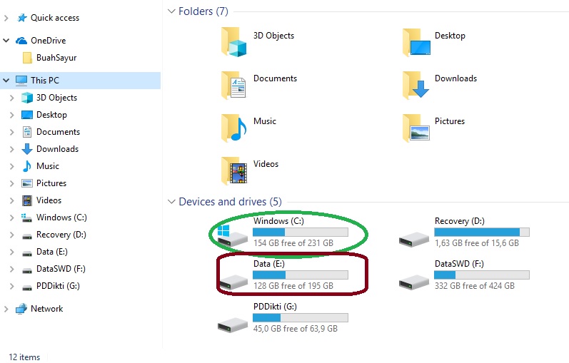 - Buka device dan drive melalui Windows Explorer, pilih This PC, dan perhatikan gambar.