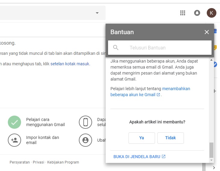 - Kotak Masuk, berisi kiriman surat elektronik (email) dari orang lain ke alamat emal Anda