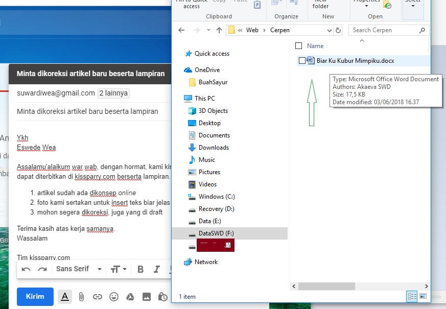 Assalamu’alaikum war wab, dengan hormat, kami kirimkan konsep artikel untuk dapat diterbitkan di kissparry.com berserta lampiran.