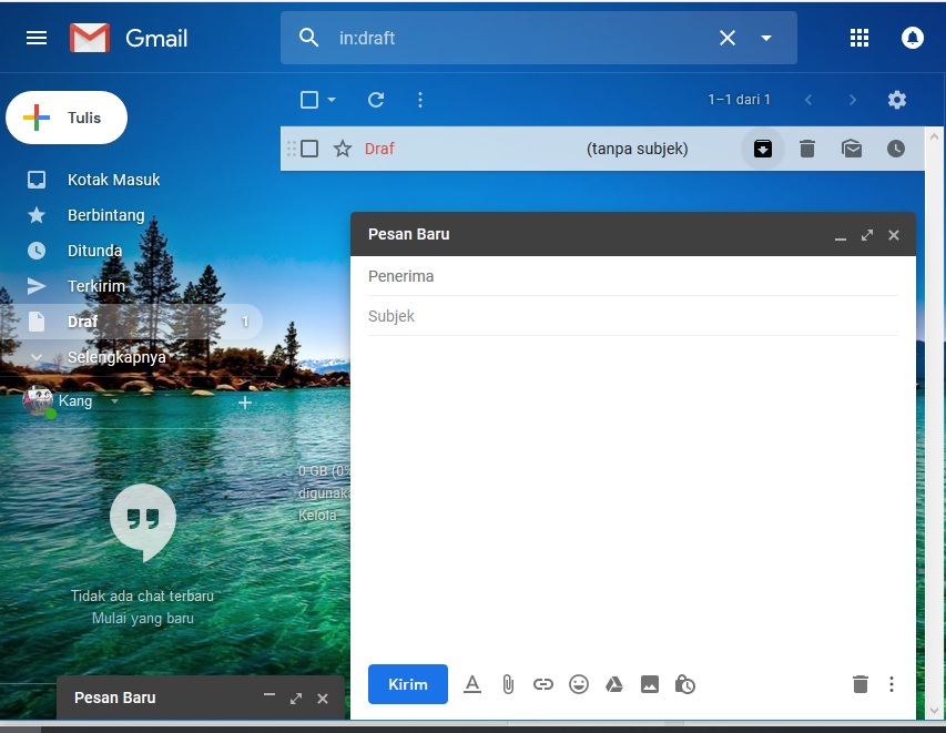 Perhatikan tampilan diatas, meninggalkan layar saat mengetik email akan menyebabkan tulisan masuk ke Draft, untuk melanjutkan klik pada draft tersebut.