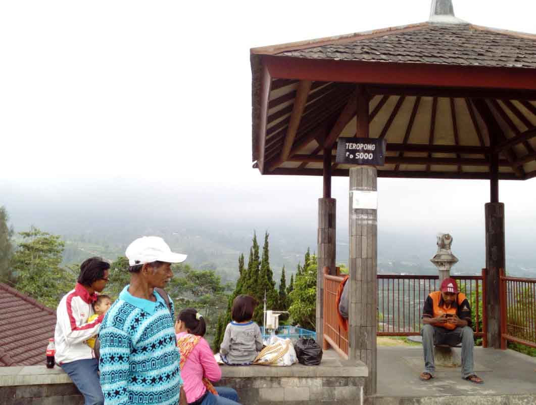 Di tempat ini apalagi jika tidak keadaan mendung, dengan menyewa sebuah teropong seharga Rp 5000,- maka pemandangan alam yang indah itu bisa didepan mata.