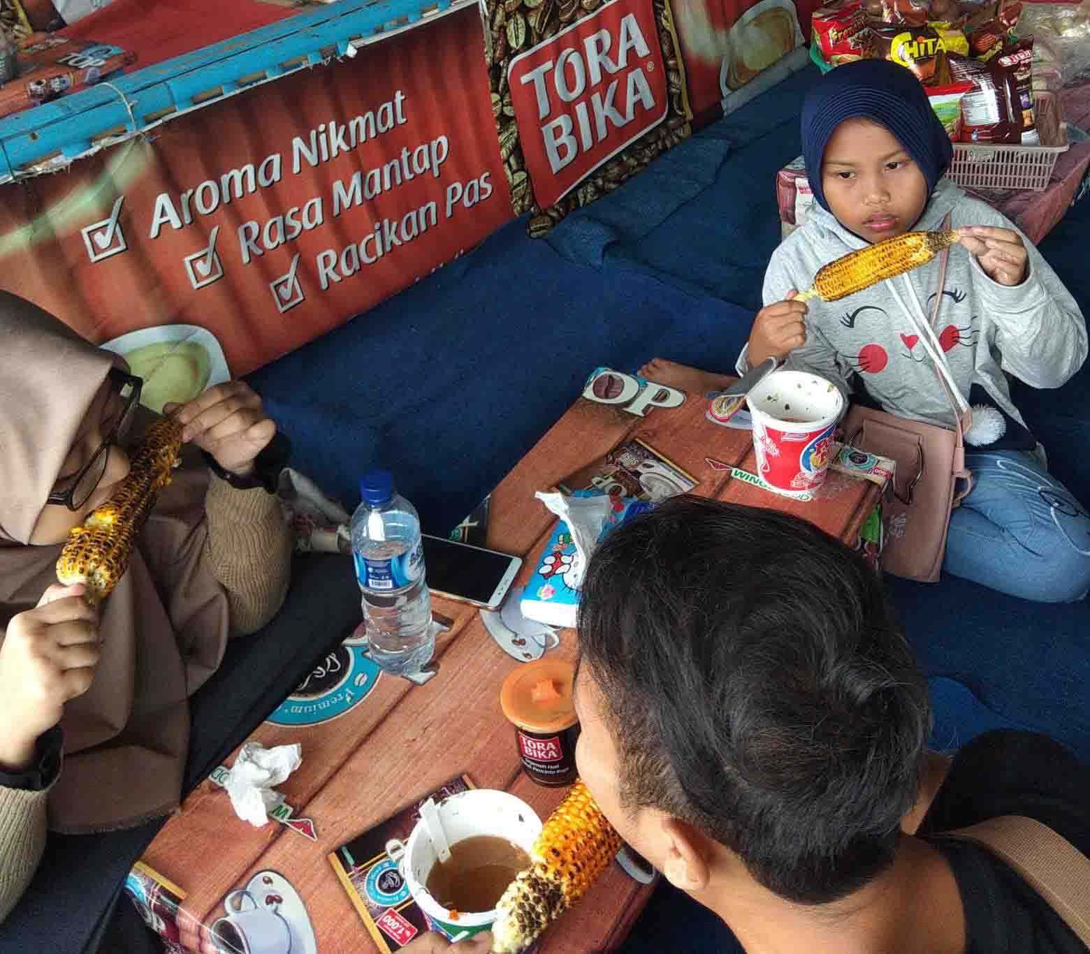Jangan lupa jagung bakar dicoba sambil santai menikmati pemandangan diarea ini.