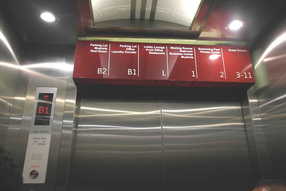 Anda boleh melihat penunjuk keterangan pada lift yang disediakan untuk para tamu, mengingat adakalanya tamu hotel tidak diantar oleh room boys (kalau dahulu akan diantar sampai ruang, namun zaman sekarang sudah lebih maju, tamu akan ditanya apa perlu diantar? bila Anda ragu jawab saja ya, perlu, dan jangan malu-malu. Atau jawab tidak saya sudah terbiasa).
