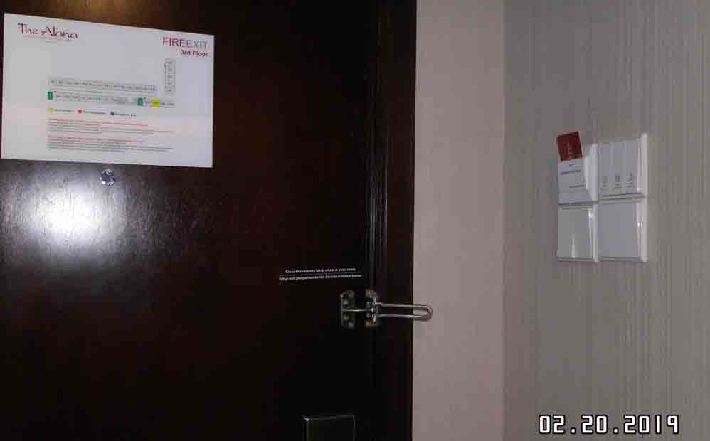 Dibalik pintu kamar tersedia petunjuk keberadaan kamar dan petunjuk cara keluar bila terjadi kebakaran atau gangguan lainnya. Didekat pintu tersedia slot kunci untuk menyalakan lampu dan alat listrik lainnya. Silakan masukkan kunci seperti contoh. Disini juga ada saklar-saklar lampu yang wajib kita coba, jangan sungkan untuk mencobanya.
