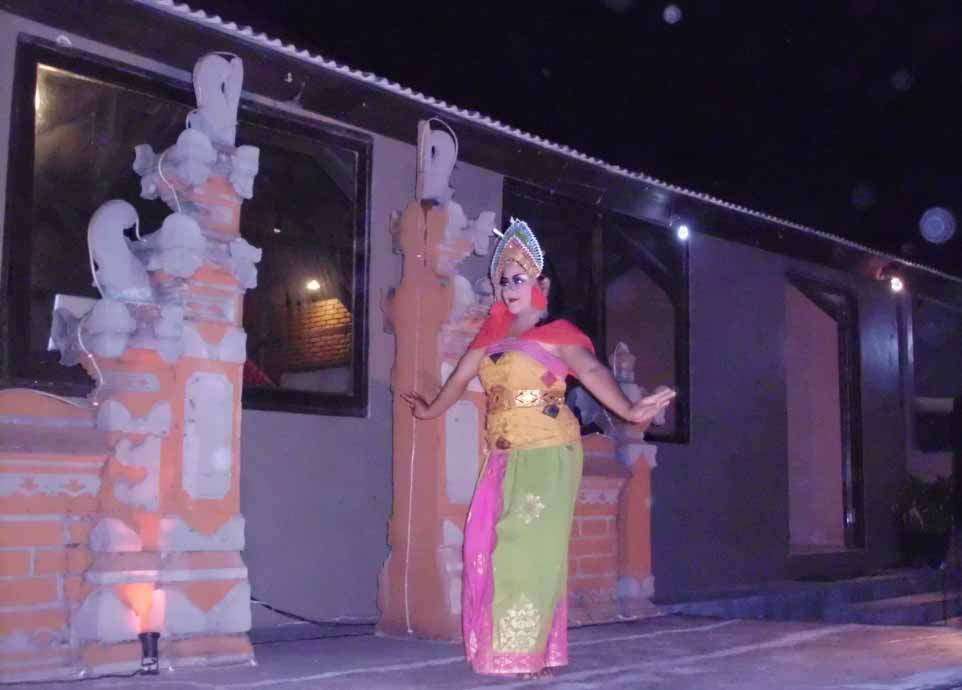 Acara makan malam ala sea food di pantai Jimbaran, dengan hiburan tari-tarian dan musik. Pukul 19.15, rombongan sampai di Pantai Jimbaran, begitu sampai belum sempat santap malam, disuguhi tarian Bali.