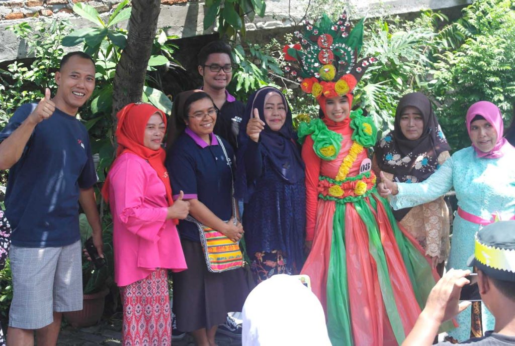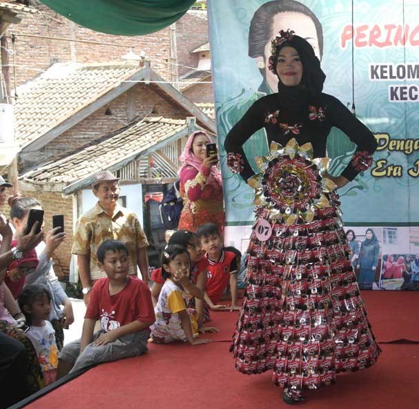 Ini bukan fesyen biasa, busana yang digunakan untuk peragaan busana atau fesyen show terbuat sampah plastik atau barang bekas. Kantong plastik orang Jawa menyebutnya tas kresek.