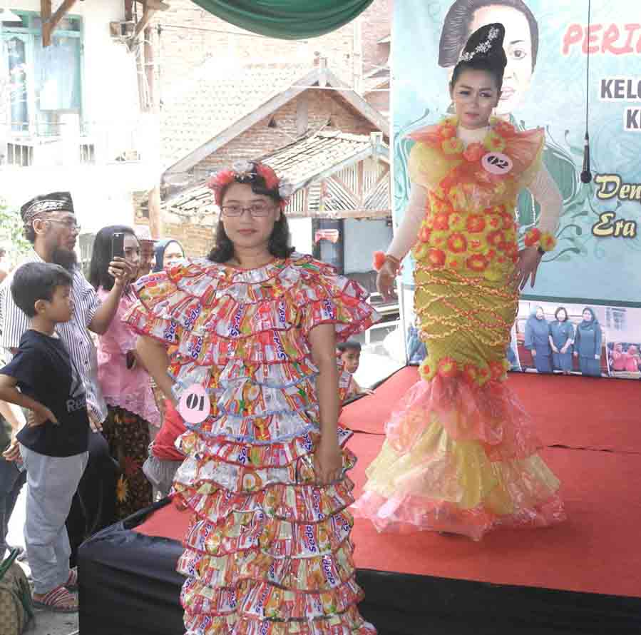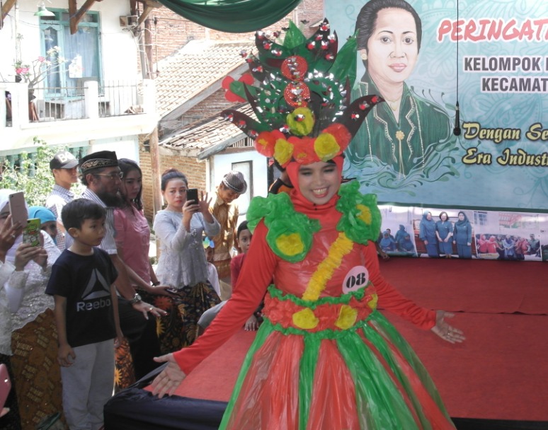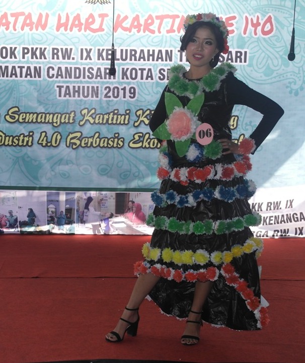 Fesyen atau busana yang dikenakan pada Fesyen Show atau Peragaan Busana di salah satu acara peringatan Hari Kartini 2019 kali ini terbuat dari plastik bekas atau tas kresek, boleh berbagai model plastik atau turunan dari plastik, atau kategori sampah lainnya.