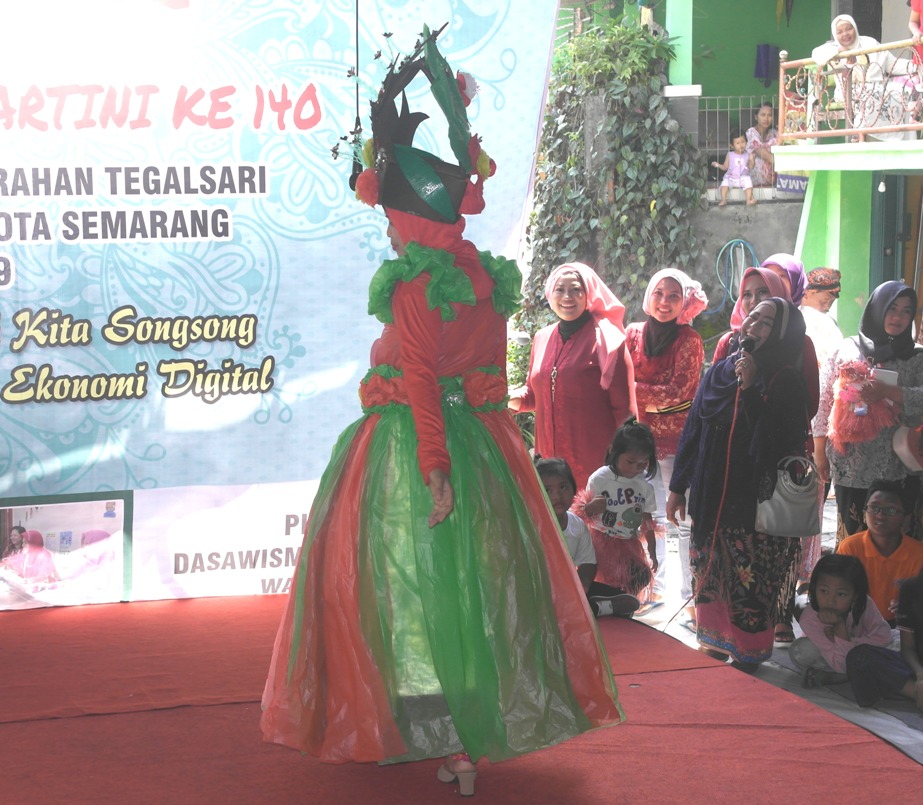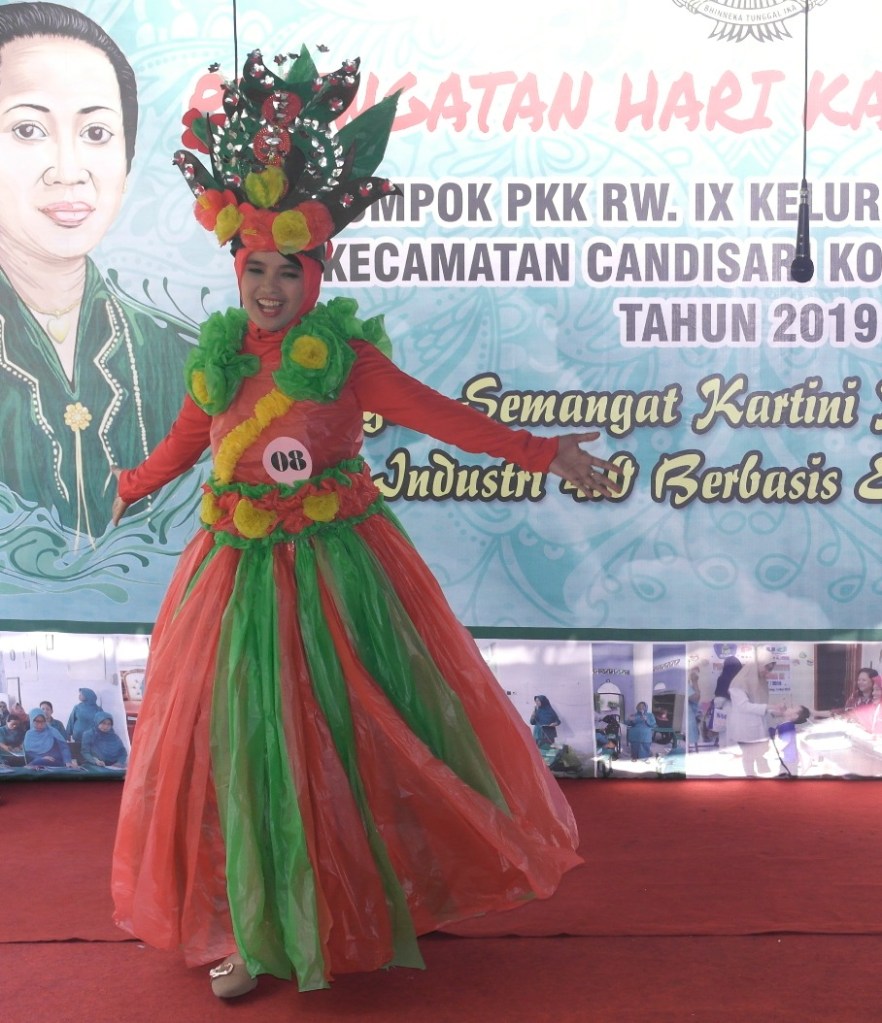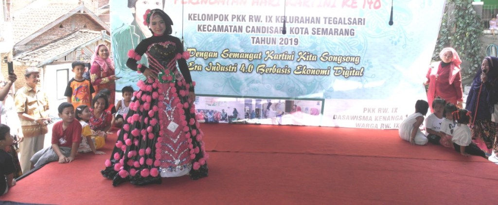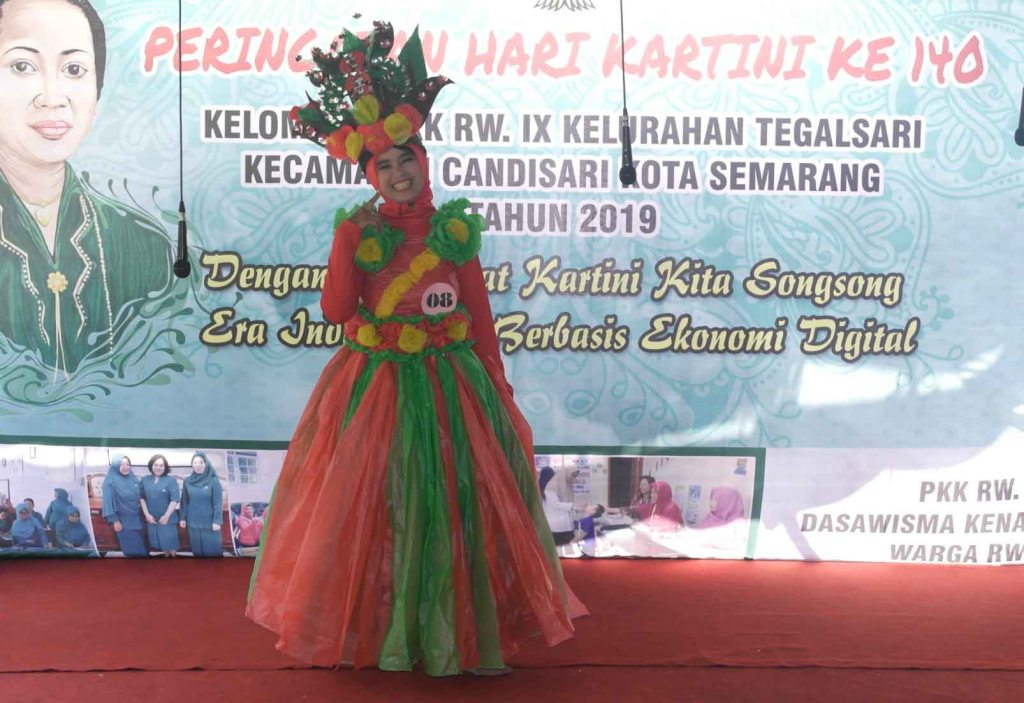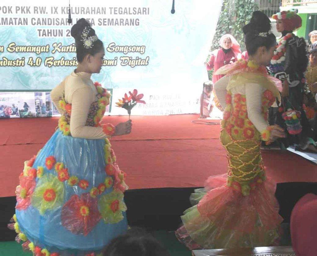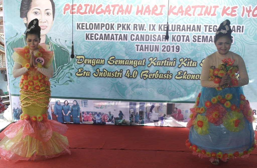 Sembilan kontingen mewakili Kelompok PKK RT di wilayah RW.09 Kelurahan Tegalsari Kecamatan Candisari Kota Semarang, ambil bagian pada fesyen show atau peragaan busana pada Peringatan Hari Kartini Kelompok PKK RW.IX Kelurahan Tegalsari. Kreativitas busana dari plastik bekas ikut memengaruhi Fesyen Show kali ini.