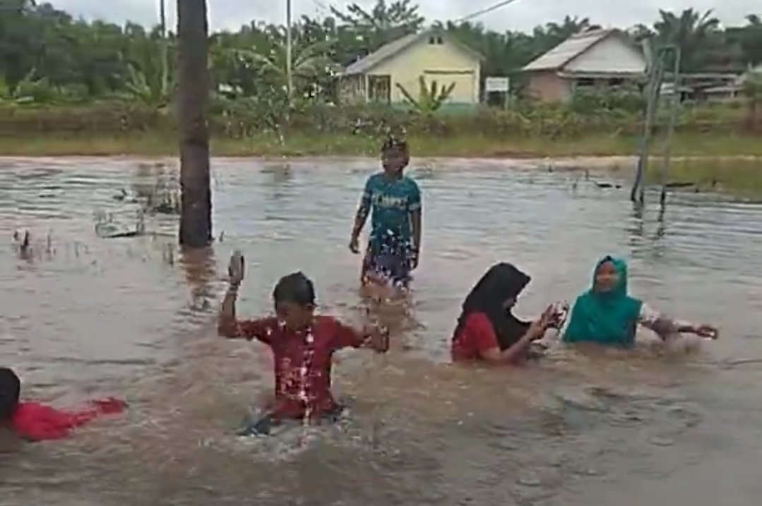 Menjadi wahana kolam renang dadakan bagi anak-anak, dengan suka cita mereka bermain air, berenang kejar-kejaran tanpa berfikir resiko yang akan terjadi, karena daerah ini merupakan daerah pasang surut yang setiap depan rumah terdapat parit dan kolam yang dalam untuk mengontrol air yang pasang.