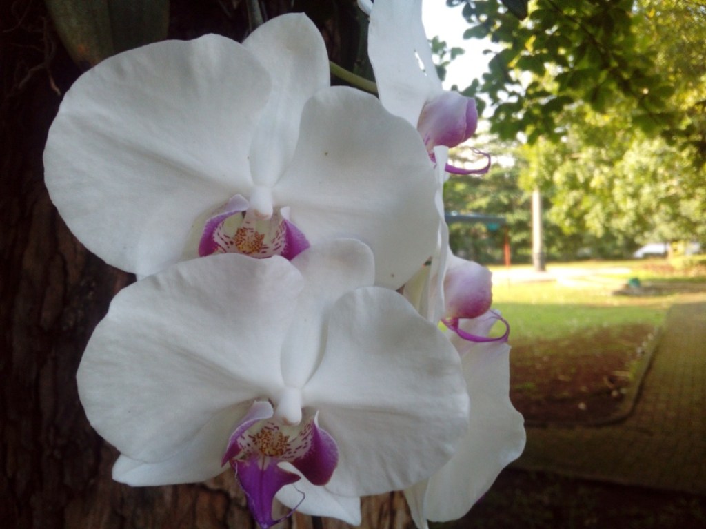 Anggrek yang berada di selasar jalan menuju Auditorium ini masih baru ditanam tempel dengan media ijuk serabut kelapa, dan bunganya sudah jadi.