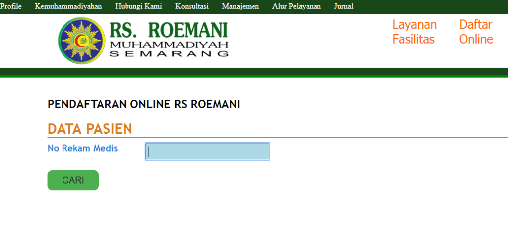 Inilah alamat web pendaftaran rawat jalan atau kontrol poliklinik RS Roemani secara online, setelah klik web pilih menu Daftar Online, klik –> http://www.rsroemani.com atau Anda dapat mengunduh aplikasi di Play Store (Android).
