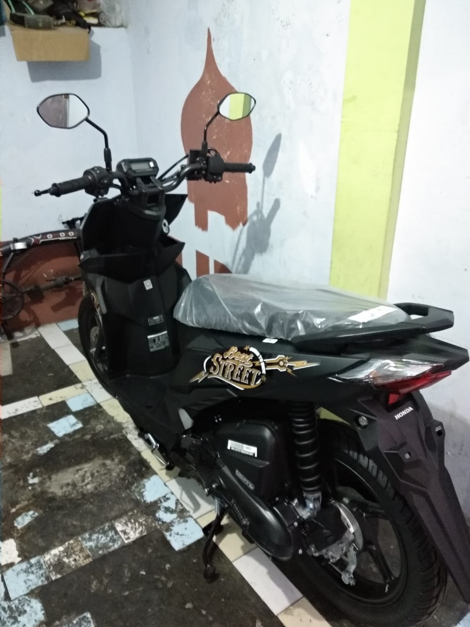 Saya memilih motor Honda matik BeAT Street lantaran ini motor sport kecil yang untuk adik saya, berkat narik arisan motor di KPRI Handayani.