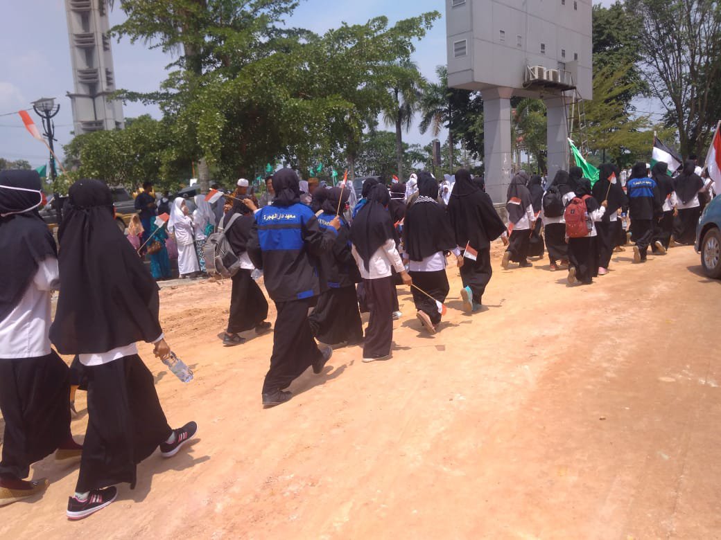 Pelaksanaan tabligh akbar diawali dengan pawai akbar yang diikuti oleh Santri Pondok Pesantren se Kab. Musi Banyuasin.