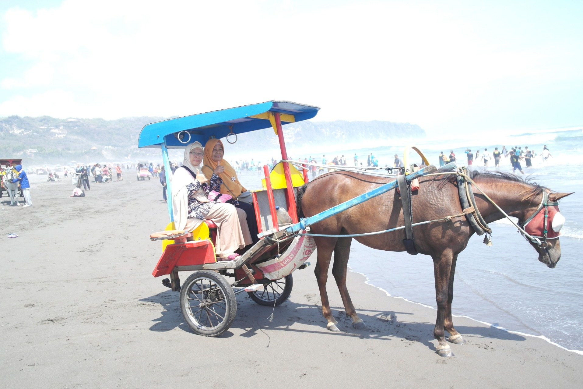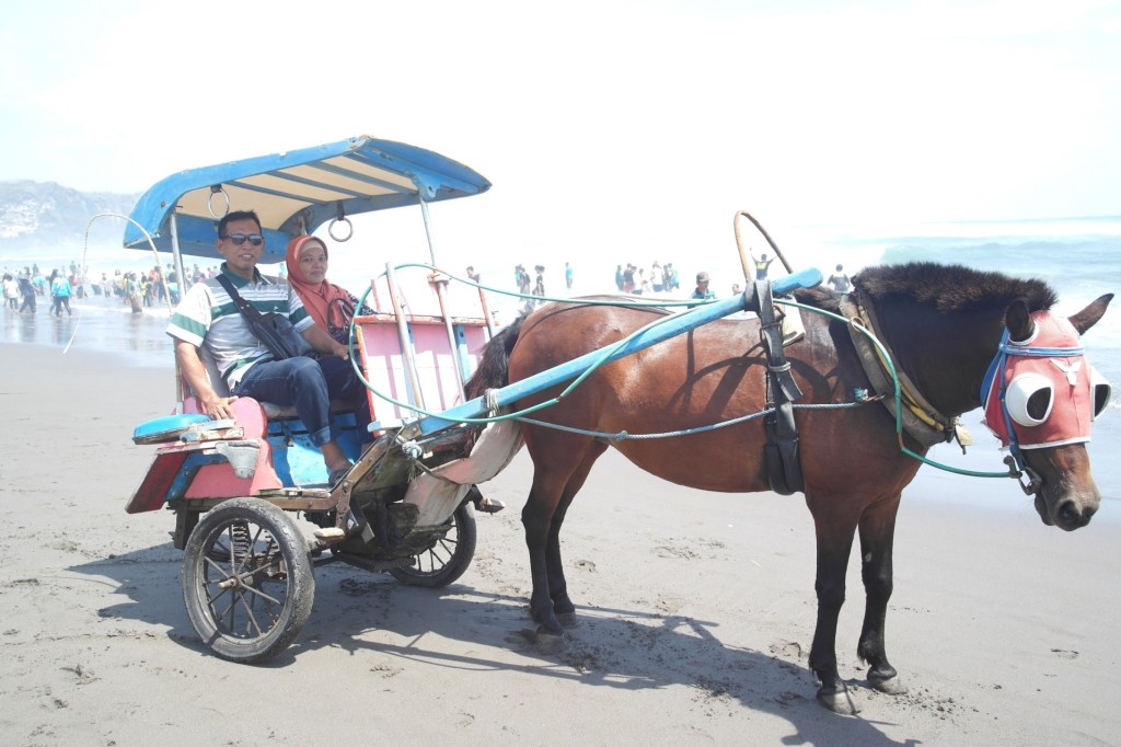 Paris (Parangtritis) masih menjadi tujuan wisata pilihan banyak orang, dan ternyata liburan (hari Minggu) kali ini pengunjung pantai boleh dikatakan padat, mulai dari pantai jalur masuk yang lama dan jalur masuk yang baru, perlu saya sampaikan disini bahwa jalur masuk ke Pantai Parangtritis ada dua yaitu yang sebelah timur (lama) dan yang sebelah barat (baru), dan untuk yang sebelah barat dinamakan Pantai Parangtritis Baru, padahal pantainya ya satu Parangtritis itu sendiri.