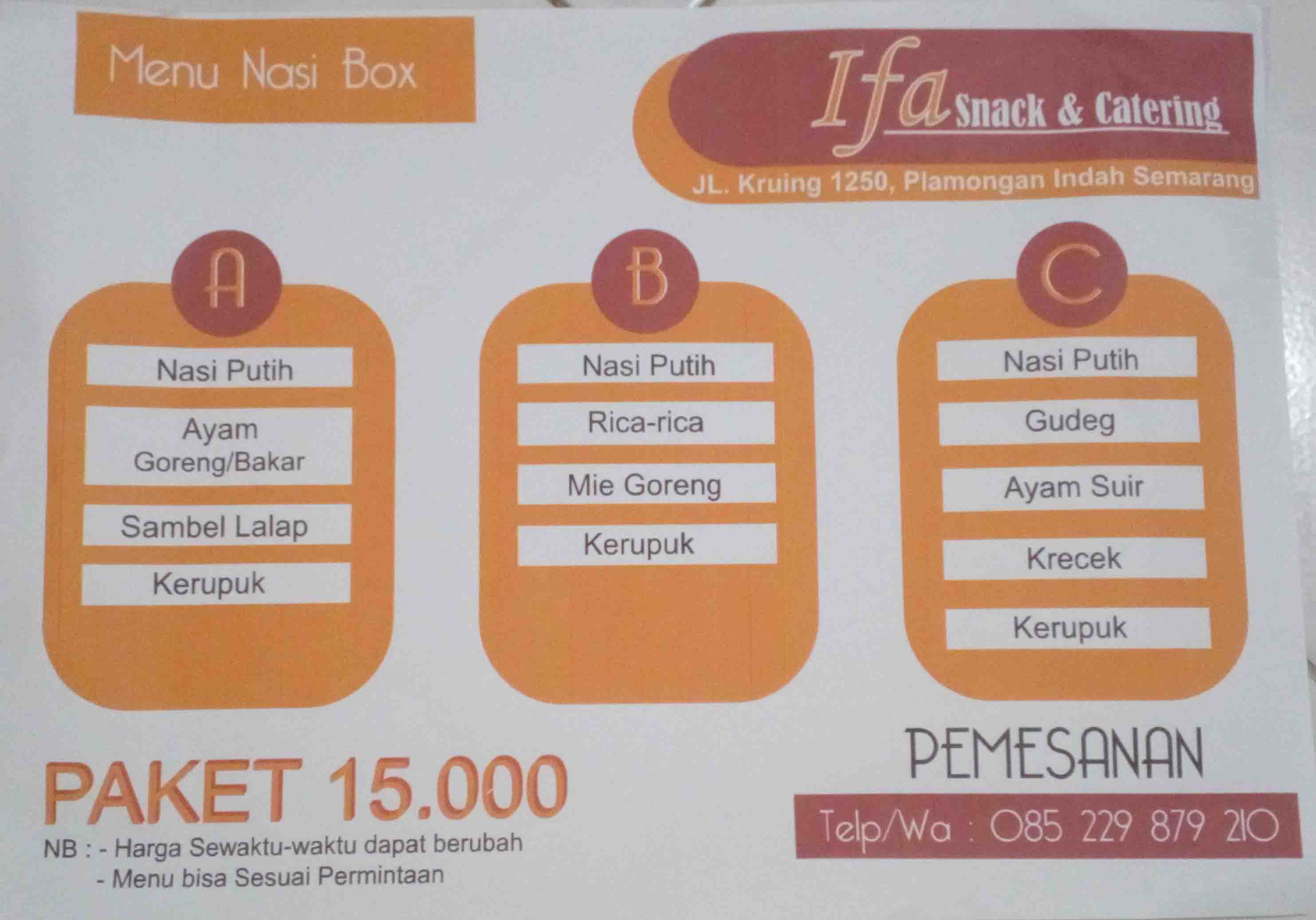 Pesan atau tanya-tanya via WA Klik DISINI ke IFA Snack & CATERING