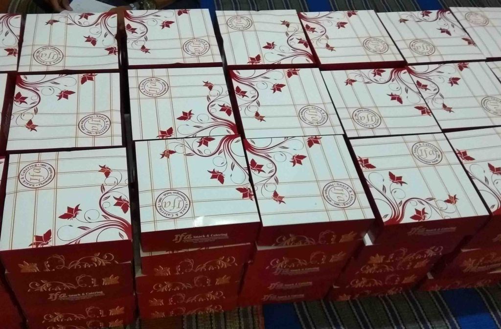 Saya pernah memesan nasi box untuk Aqiqah (ibu dan saya)…. dulu katanya belum diaqiqahi, jadi waktu itu aqiqah tetapi langsung dikirimkan ke panti asuhan dan sebagian lagi dibawa antar ke rumah. Kata tetangga sebelah masakannya enak ya…