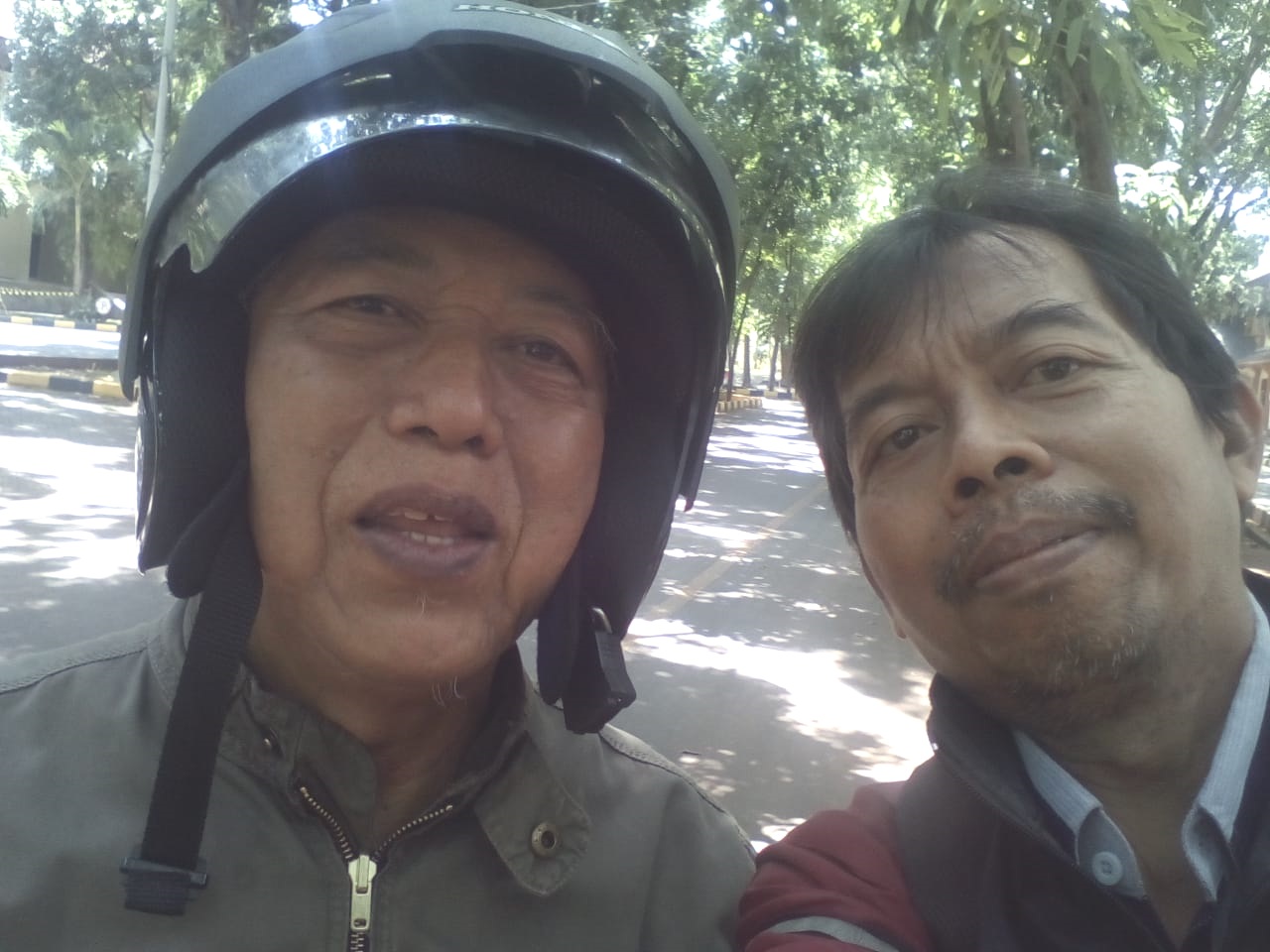 “Iya…..”, bapak tadi membuka kaca helmnya,