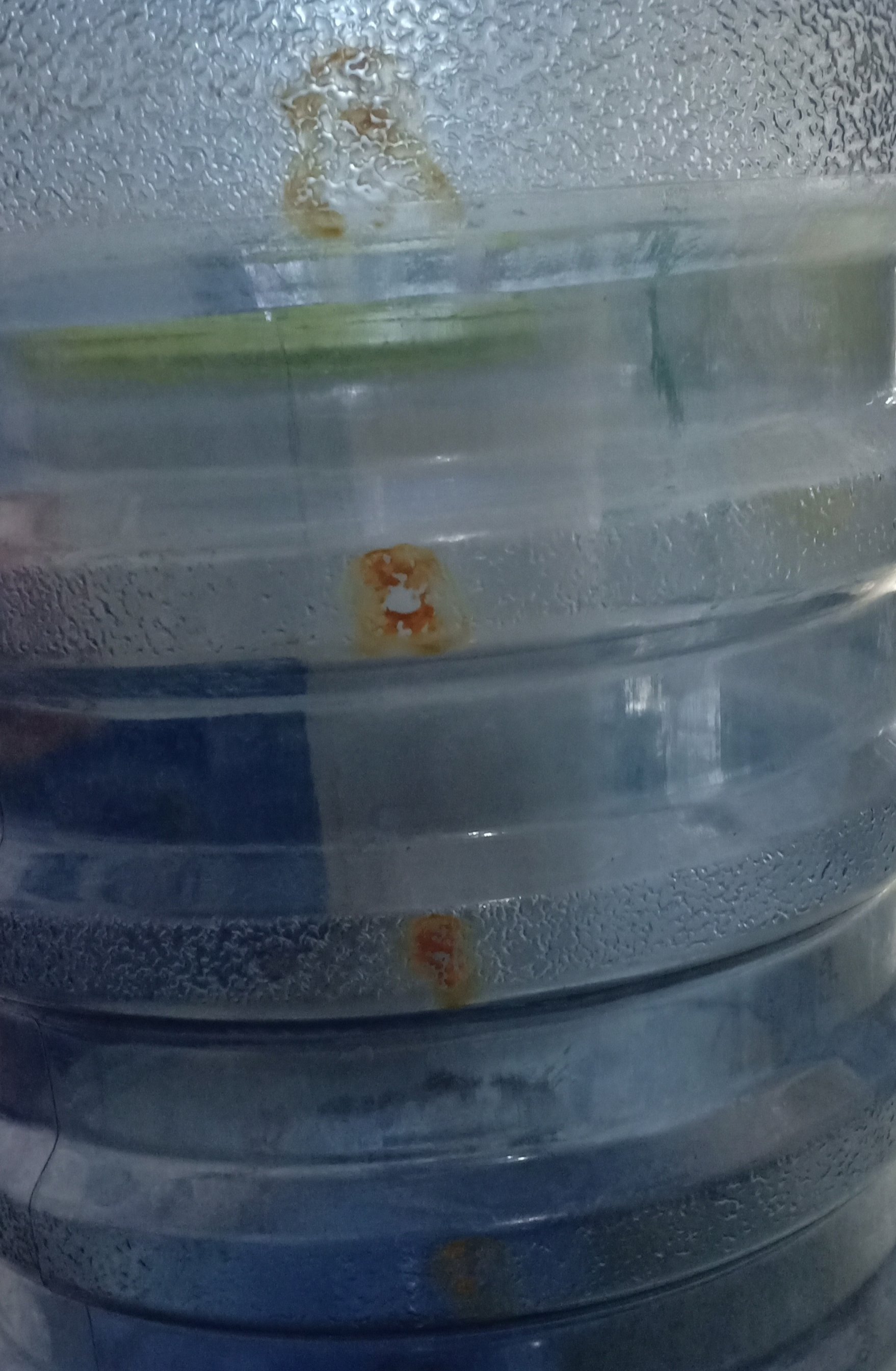 Saya pernah, dan saya pun langsung sadar memang benar yang diucapkan karyawan mini market tersebut, dan saya amati secara seksama memang ada bercak karat yang memanjang, kemungkinan galon tersebut tersimpan lama dan menempel pada dinding besi gudang agen air mineral tersebut.