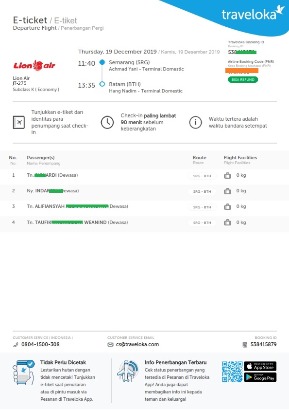 Saat penerbangan ke Batam (BTH – Hang Nadim) yang akan dilakukan besok siang (19/12) kami berempat menggunakan penerbangan tanpa bagasi.
