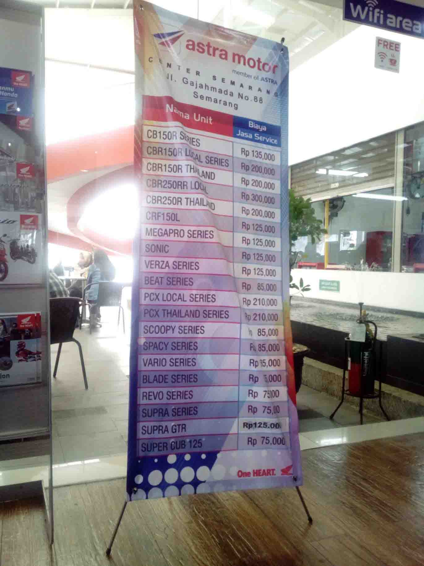 Mau tau berapa biaya jasa servis motor Honda di Semarang, khususnya Astra Motor Center Semarang Gajahmada.