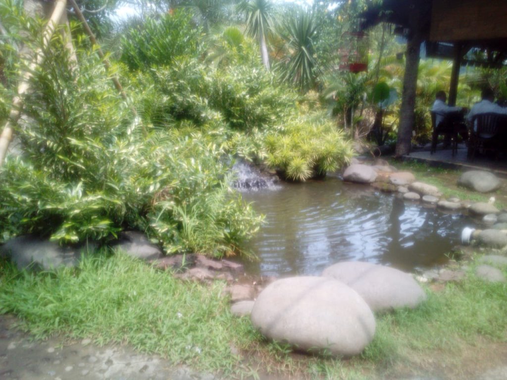 Letaknya di tepi sungai, sehingga sebelum menikmati sajian yang kita pesan, kita bisa menikmati gemericik air atau melihat lihat bunga-bunga disini, atau setelah kita menikmati makan juga bisa atau sambil menikmati makan.