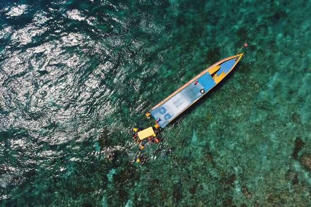Jernihnya air dari atas bahkan bisa melihat genus karang Montipora, yang merupakan genus karang paling sering ditemukan mendominasi perairan dangkal.