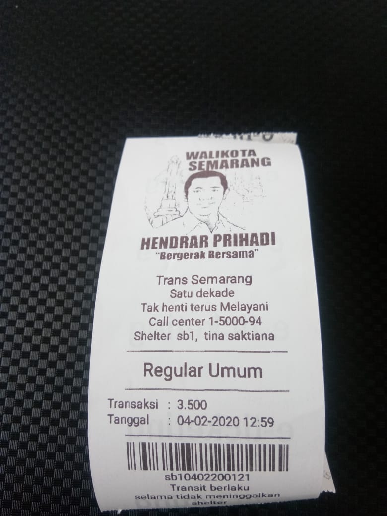 Sesampainya di Jl Pandanaran, istri LikKasjo mengirim gambar tiket Trans Semarang di WA Kissparry. Setelah dipandangi seksama tanggal yang tertera di tiket ternyata tertulis 4 Februari 2020 pukul 12.59.