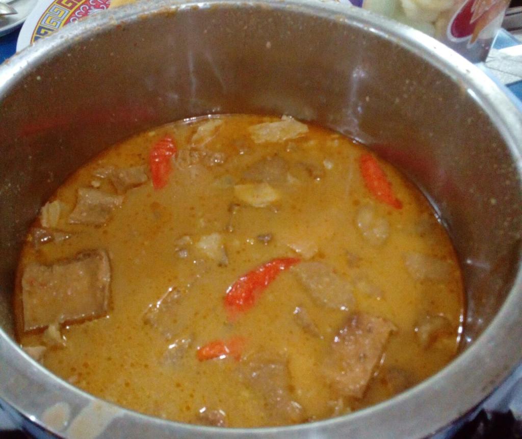 Sambel tumpang dimodifikasi dengan menambahkan daging sapi dan koyor, dan masih ditambah dengan cabe merah utuh, terus terang bikin menggugah selera segera ingin menyantapnya.