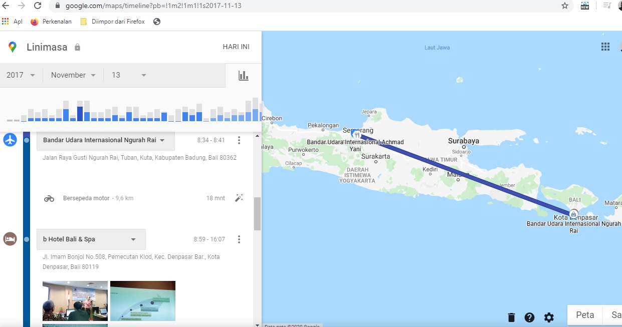 Dahulu, sewaktu sering ke Jakarta juga telah menggunakan Google Maps untuk pencarian lokasi, tetapi mungkin waktu itu Google Maps belum mencatan melalui Linimasa mereka.