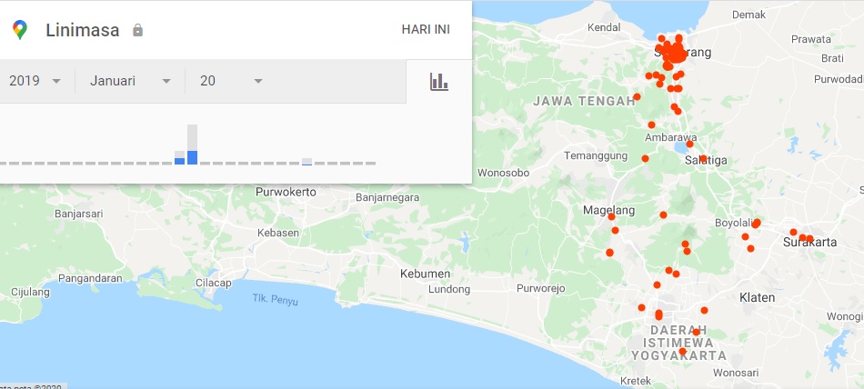 Ternyata di Semarang bloknya masih merah banget, berarti aktivitas paling banyak ada di Semarang.