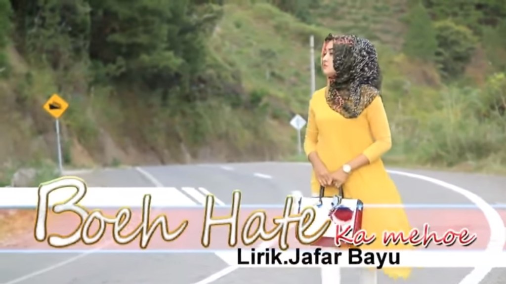 Boeh Hate Ka Mehoe, dengan khat Aceh. Lagu yang berkisah tentang seorang laki-laki yang galau akibat kehilangan pujaan hatinya ini, dibawakan cukup apik oleh Bergek. Dikutip dari HabaDaily.