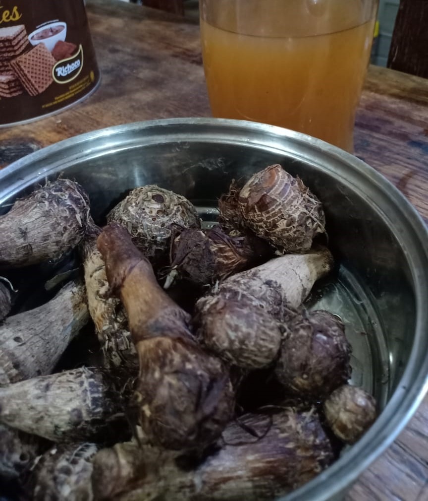Di Filipina, umbi yang telah dihancurkan, direndam dan dihancurkan, direndam dan dilembutkan dalam air digunakan untuk menghilangkan mimisan.