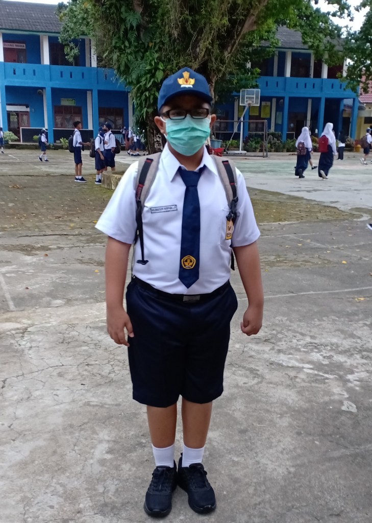 Penuh semangat dan wajah berseri-seri, Wildan Kissparry Jr, tidak ketinggalan mempersiapkan diri dari pukul 05.00 WIB. Setelah urusan MCK, kemudian sarapan, dengan senyum-senyum sendiri mengenakan seragam sekolah baru, ya celana biru, yang semula celana merah, dengan dasi yang berbeda pula.