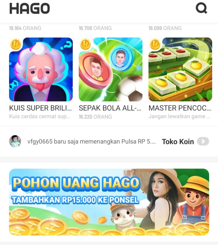 Tapi game pohon uang Hago, dapat menghasilkan uang yang dapat kita tukarkan dengan pulsa, memang sih, tidak sama banyak paket internet yang pakai, tetapi setidaknya tidak habis begitu saja, senang tetap dapat.