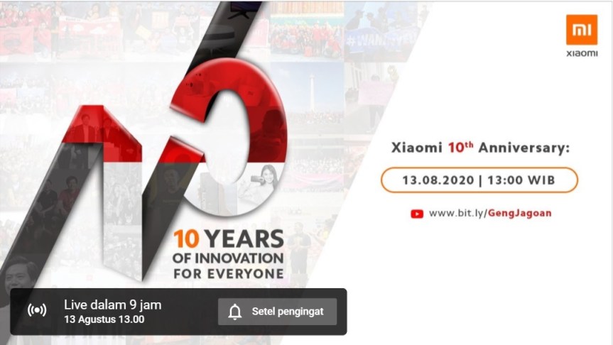 Perayaan 10 Tahun Xiaomi dan Peluncuran Produk-Produk Baru, ini titel dalam siaran langsung di Youtube siang ini pukul 13.00 WIB