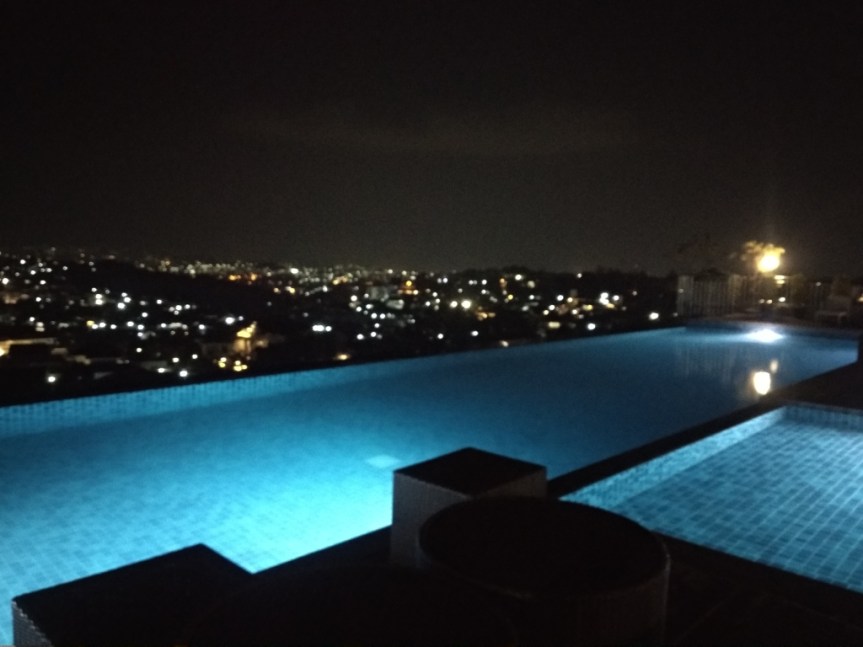 Sekarang hotel-hotel baru terlebih dalam padatnya kota, kolam renang berada di puncak menara sepertinya sudah agak lumrah, seperti halnya Grand Edge Hotel Sultan Agung Semarang ini.