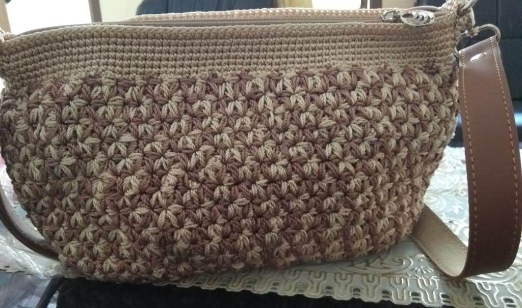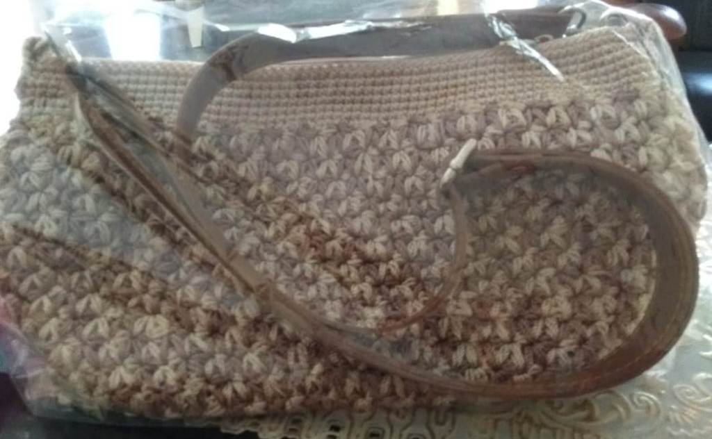 Teman-teman khususnya pecinta tas rajutan, kali ini saya ingin berbagi informasi mengenai tas rajutan motif melati, warna coklat tua berpadu dengan warna coklat muda.