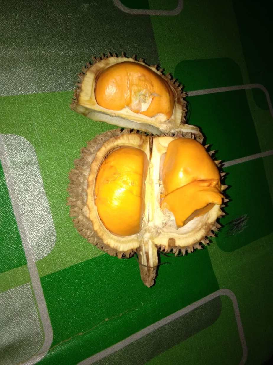 Lumayan juga pohon durian montong yang tidak terlalu tinggi ini berbuah, dan tentu bisa dinikmati sendiri.