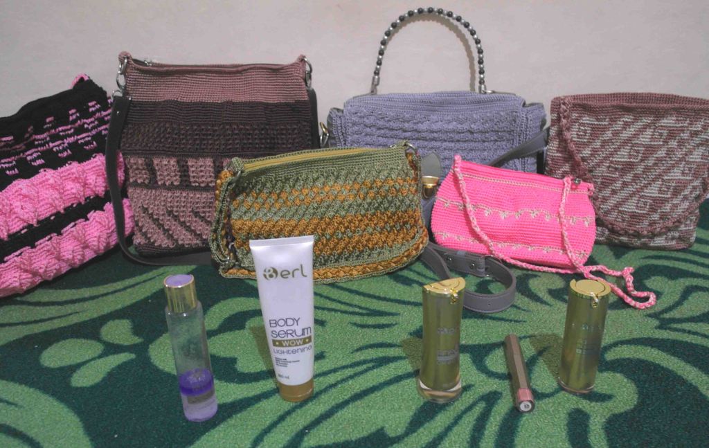 Saya masih terus mengembangkan keterampilan dalam membuat motif tas rajutan, karena pemesan yang datang kadang menyerahkan motifnya kepada saya.