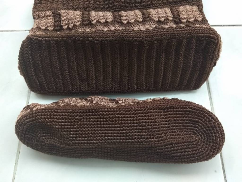 Ia tahu kalau tinggi tas rajutan sudaj lumayan sekitar 5 cm, akupun menegaskan lagi jika masih kurang sreg dengan keadaan ini, terlanjur dibuat tidak sesuai contoh belum tentu mau dan saya takut ibu yang pesan itu akan sedikit kecewa.